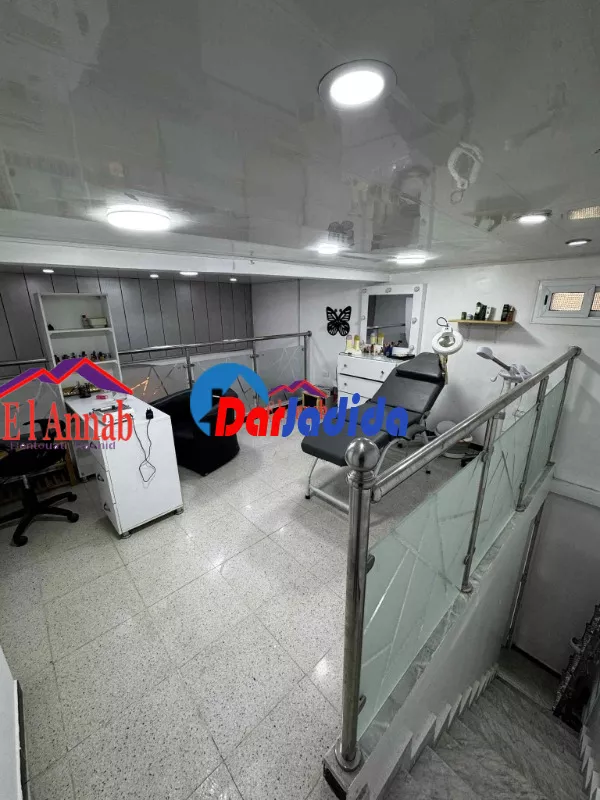 A louer local commercial équipé pour salon de coiffure et esthétique, sur 2 niveaux : 1er , salon de coiffure avec 7 box, 3 postes, caisse, sanitaires double réservoir ; 2ᵉ,dédié à l’esthétique. Prêt à l’exploitation prix :45000da/mois
