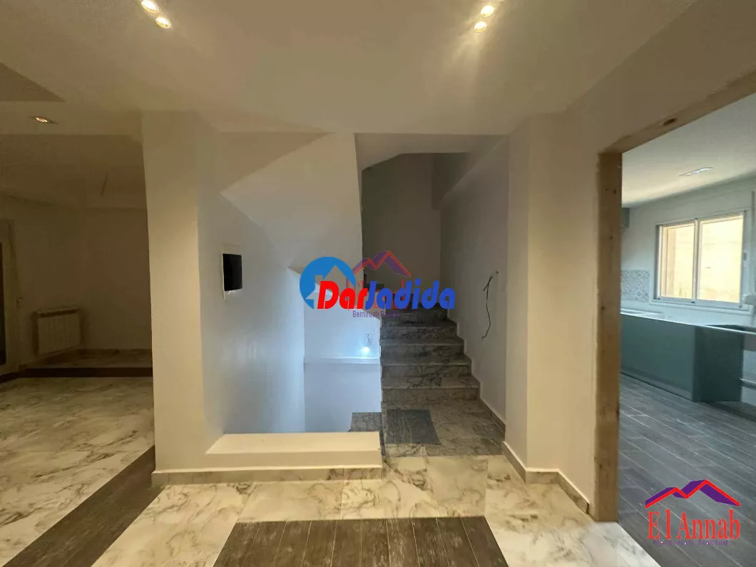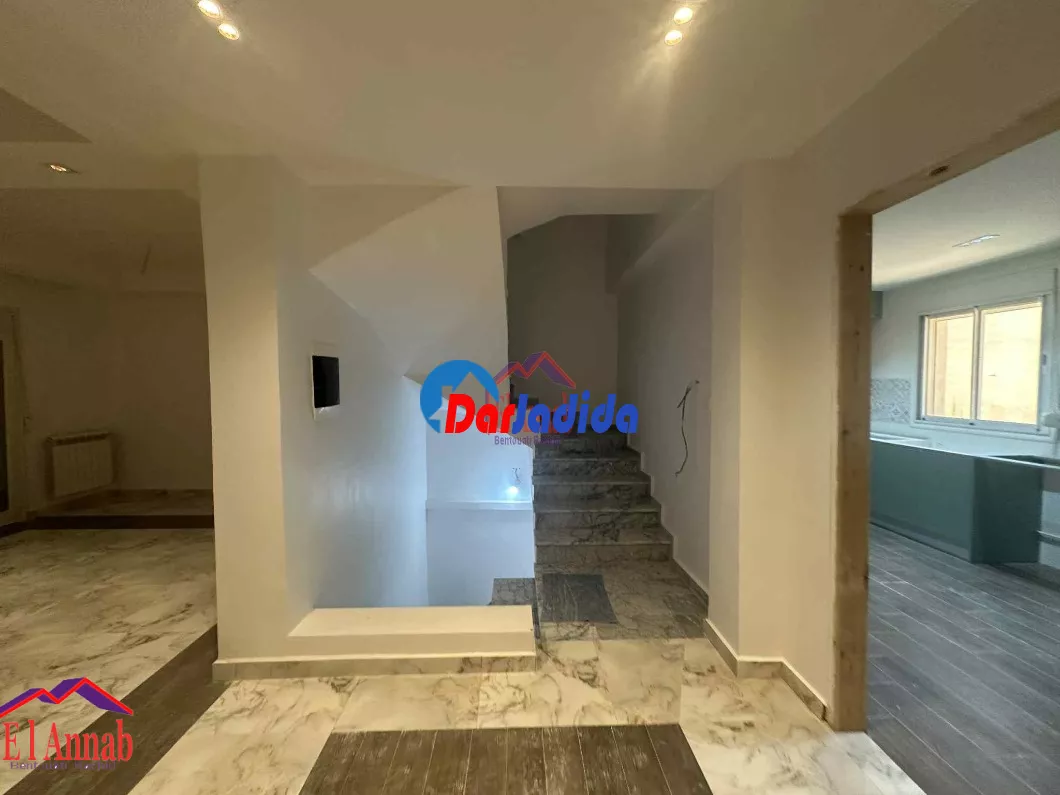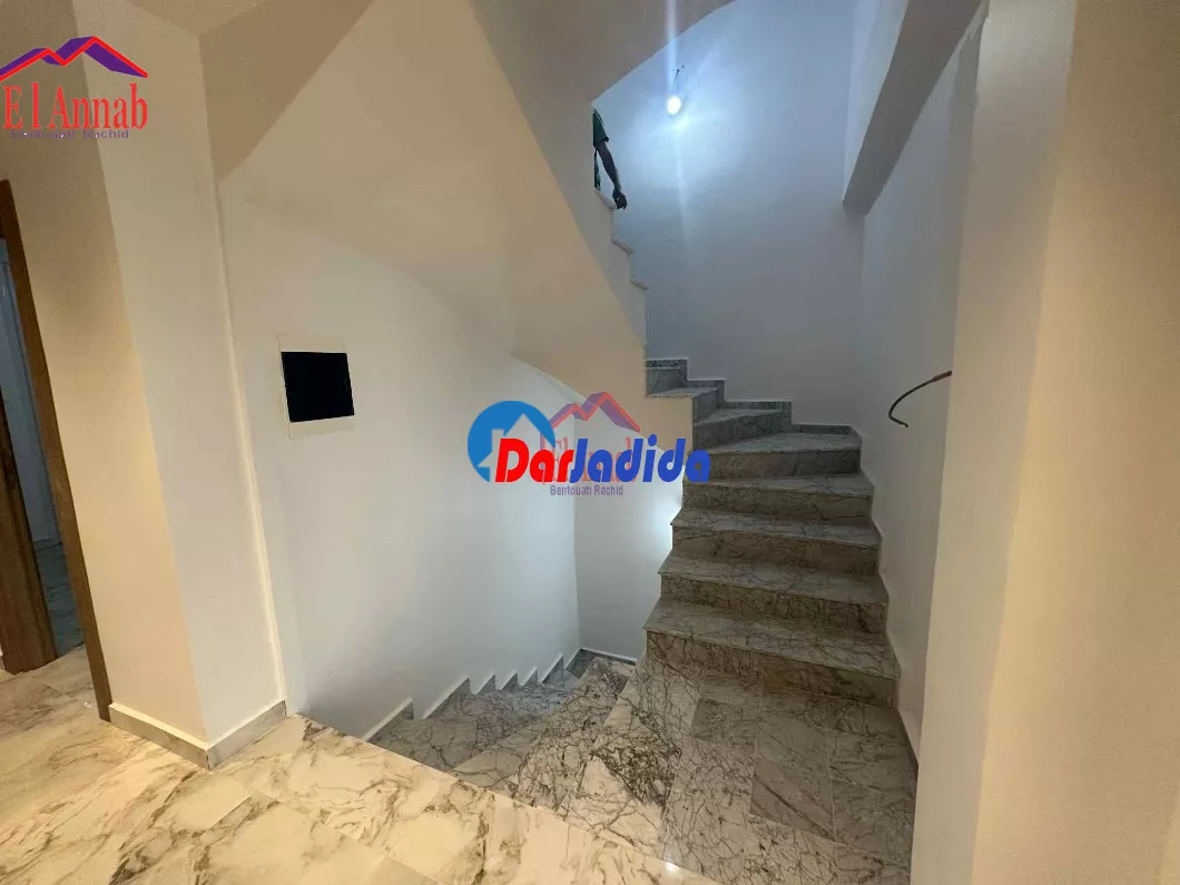 L’Agence Immobilière El Annab propose à la vente une belle villa neuve de 100 m² bâtis (R+2), située à Seraidi, offrant une vue imprenable sur la nature. Jamais habitée, cette construction récente bénéficie d’un bon voisinage et comprend une cour de 35 m². Le rez-de-chaussée est composé d’un studio, 1er étage comprend un grand salon, une cuisine et des sanitaires, tandis que le 2éme étage dispose de trois chambres. Acte et livret foncier